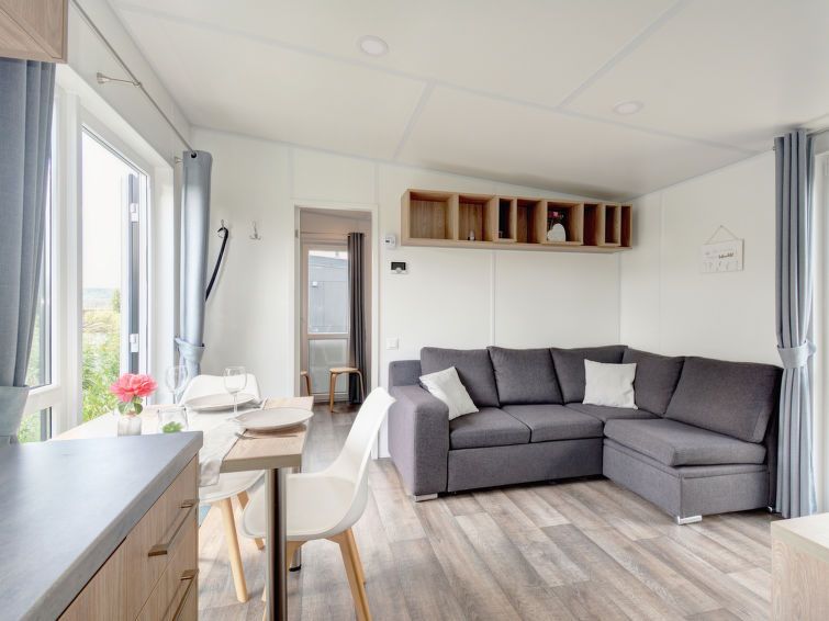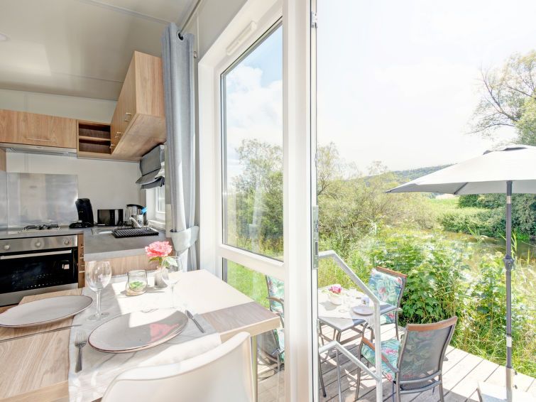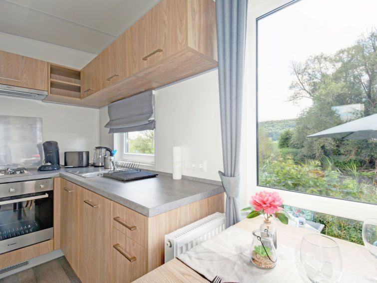 "Tiny Haus Altmühlblick", 2-room mobile home 25 m2. Object suitable for 2 adults + 2 children. Cosy furnishings: living/sleeping room with 1 sofabed (120 cm, length 170 cm), satellite TV. 1 room with 1 french bed (140 cm, length 200 cm). Open kitchen (oven, Gas stove, 2 gas rings, kettle, electric coffee machine).