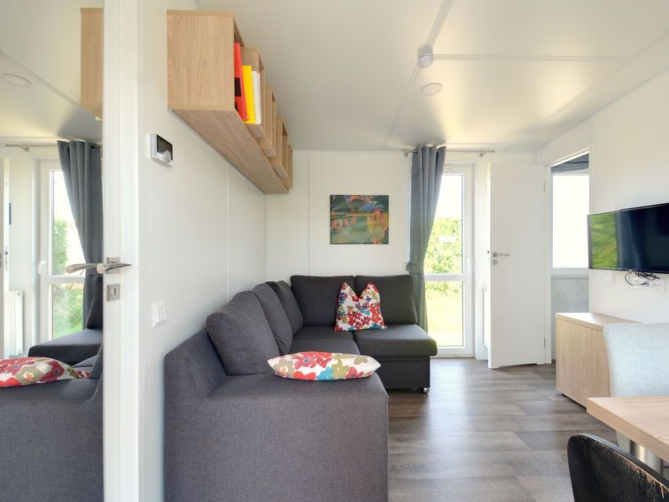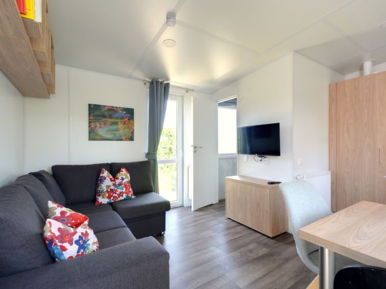 "Tiny Haus Altmühlpanorama", 2-room mobile home 25 m2. Object suitable for 2 adults + 2 children. Cosy furnishings: living/sleeping room with 1 sofabed (120 cm, length 170 cm), satellite TV. 1 room with 1 french bed (140 cm, length 200 cm). Open kitchen (oven, Gas stove, 2 gas rings, kettle, electric coffee machine).