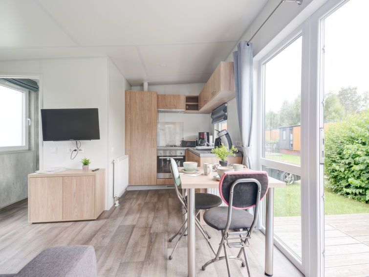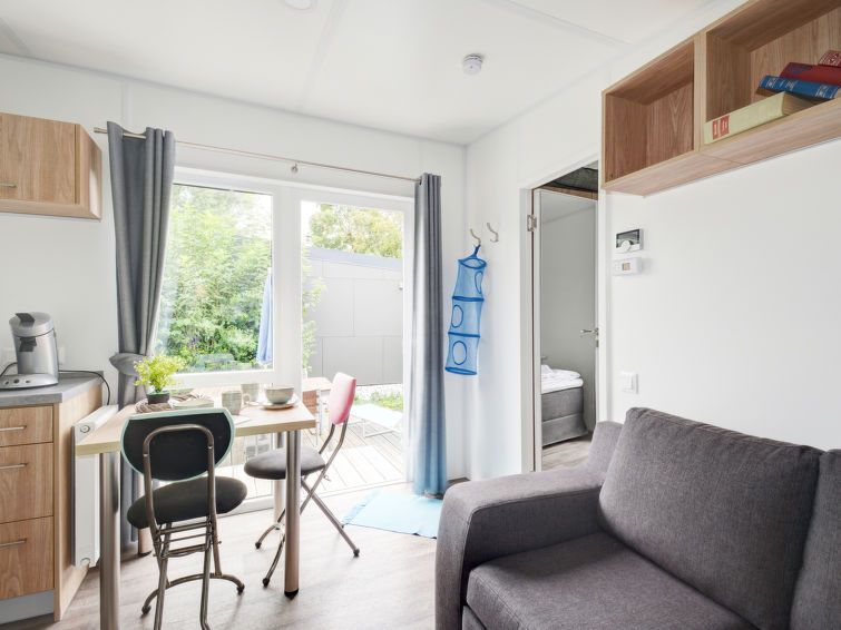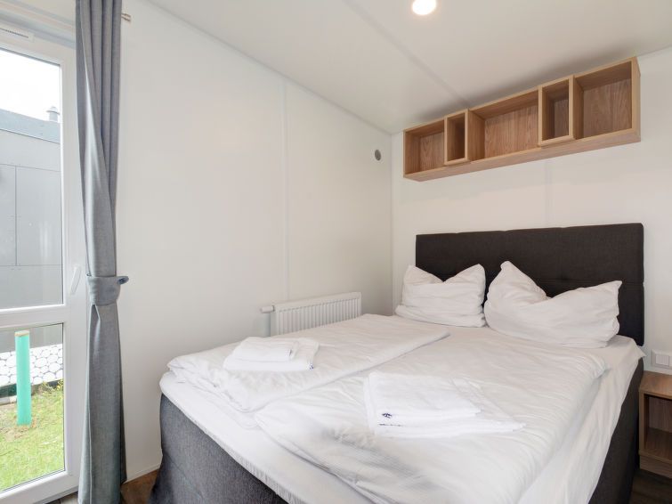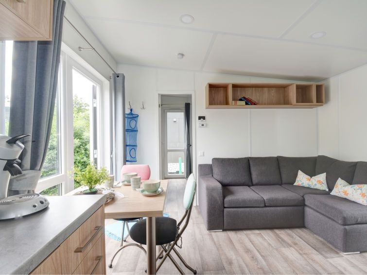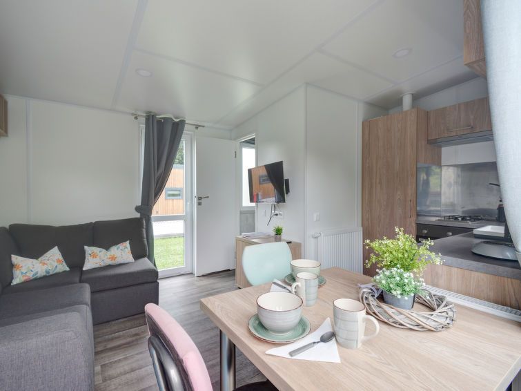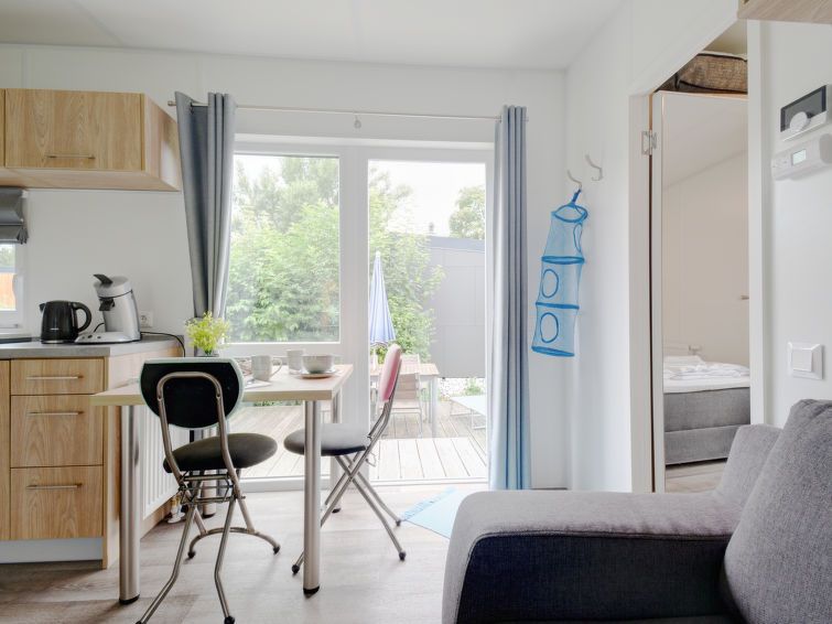 "Tiny Haus Heidi", 2-room mobile home 25 m2. Object suitable for 2 adults + 2 children. Cosy furnishings: living/sleeping room with 1 sofabed (120 cm, length 170 cm), satellite TV. 1 room with 1 french bed (140 cm, length 200 cm). Open kitchen (oven, Gas stove, 2 gas rings, toaster, kettle, electric coffee machine).
