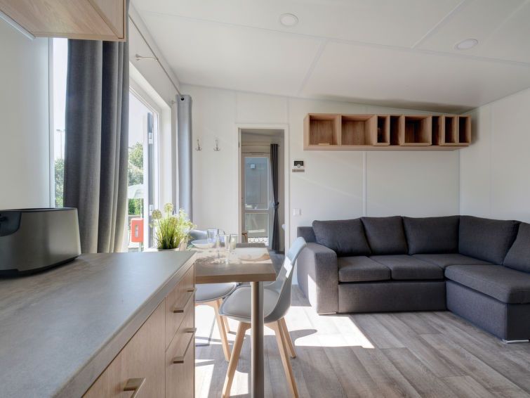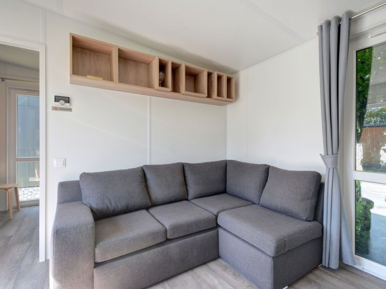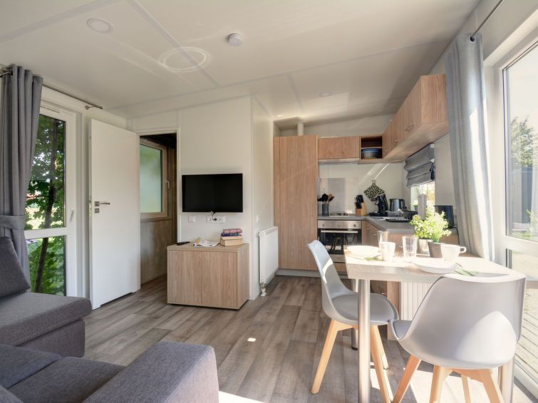 "Tiny Haus Ludwig", 2-room mobile home 25 m2. Object suitable for 2 adults + 2 children. Cosy furnishings: living/sleeping room with 1 sofabed (120 cm, length 170 cm), satellite TV. 1 room with 1 french bed (140 cm, length 200 cm). Open kitchen (oven, Gas stove, 2 gas rings, kettle, electric coffee machine).