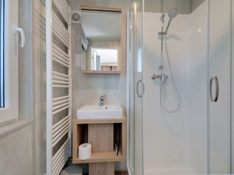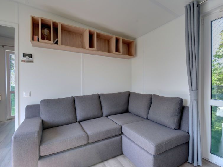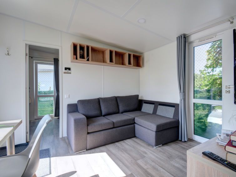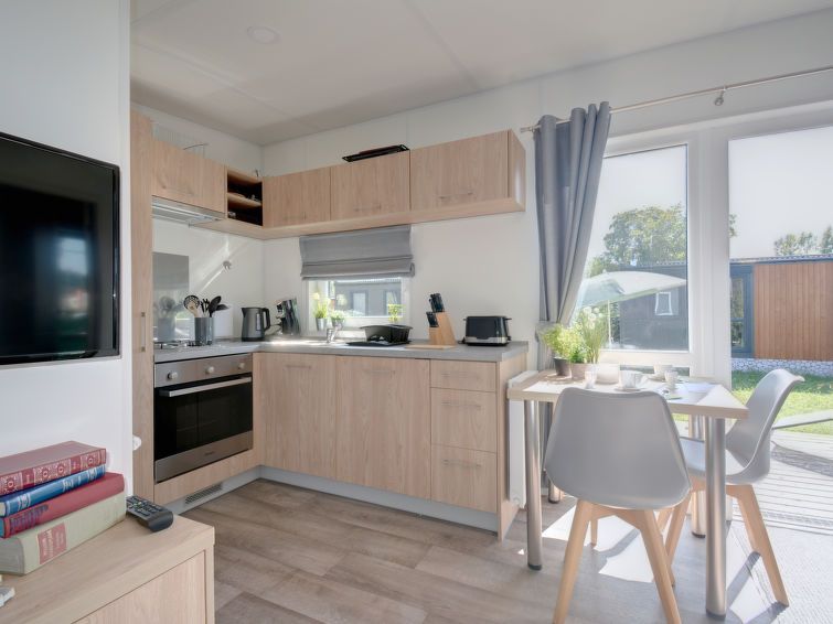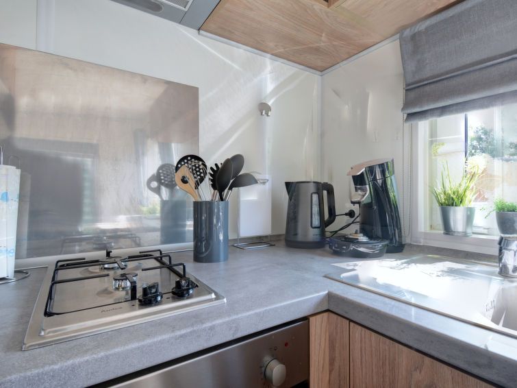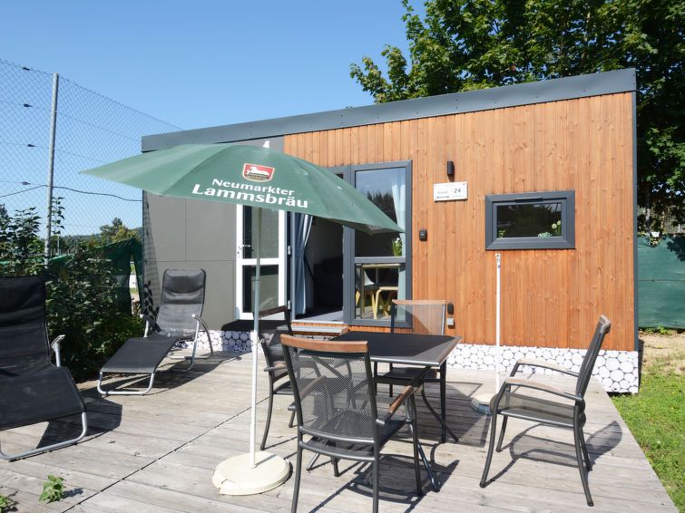 "Tiny Haus Marion", 2-room mobile home 25 m2. Object suitable for 2 adults + 2 children. Cosy furnishings: living/sleeping room with 1 sofabed (120 cm, length 170 cm), satellite TV. 1 room with 1 french bed (140 cm, length 200 cm). Open kitchen (oven, Gas stove, 2 gas rings, kettle, electric coffee machine).