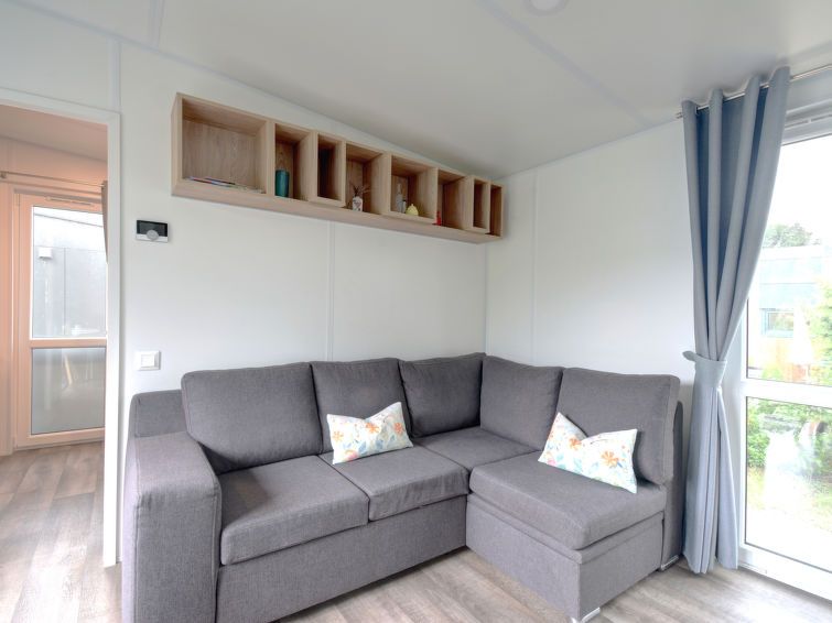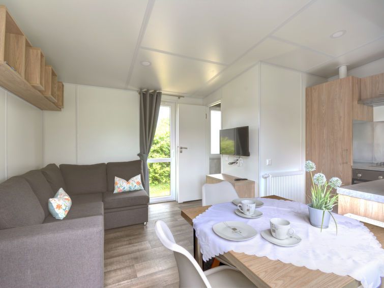 "Tiny Haus Renate", 2-room mobile home 25 m2. Object suitable for 2 adults + 2 children. Cosy furnishings: living/sleeping room with 1 sofabed (120 cm, length 170 cm), satellite TV. 1 room with 1 french bed (140 cm, length 200 cm). Open kitchen (oven, Gas stove, 2 gas rings, kettle, electric coffee machine).