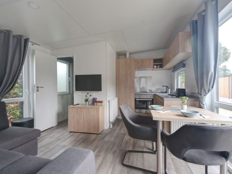"Tiny Haus Scharl", 2-room mobile home 25 m2. Object suitable for 2 adults + 2 children. Cosy furnishings: living/sleeping room with 1 sofabed (120 cm, length 170 cm), satellite TV. 1 room with 1 french bed (140 cm, length 200 cm). Open kitchen (oven, Gas stove, 2 gas rings, kettle, electric coffee machine).
