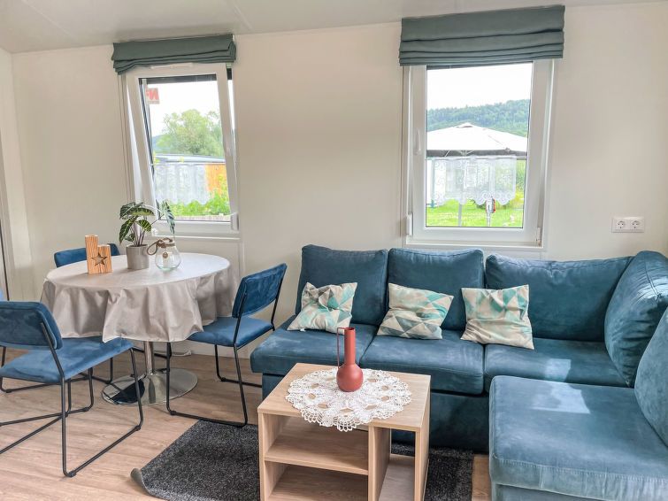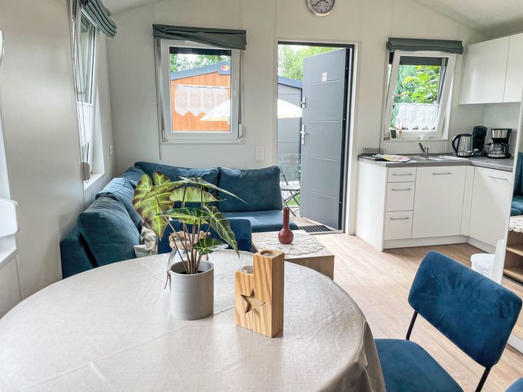 "Tiny Haus Zenetti", 3-room mobile home 28 m2. Cosy furnishings: living/sleeping room with 1 sofabed (120 cm, length 170 cm), satellite TV. Exit to the terrace. 1 room with 1 french bed (140 cm, length 200 cm). 1 room with 2 beds. Open kitchen (oven, 2 ceramic glass hob hotplates, kettle, electric coffee machine).