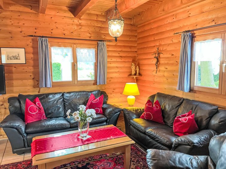 4-room house 90 m2 on 2 levels. Rustic and wooden furniture furnishings: living/dining room with dining nook and satellite TV (flat screen), heating stove. 1 room with 1 french bed (160 cm, length 200 cm). Kitchen (4 hot plates, oven, toaster, kettle, electric coffee machine). Shower/WC.