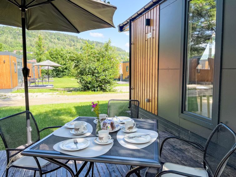 The tiny house is of great quality and features top-notch amenities. Unfortunately, the resort was very neglected, and the tiny house wasn't clean upon arrival. We spent the first two hours cleaning the living area and removing all the cobwebs. After that, we felt very comfortable in the following days. The windows had certainly never been cleaned. On the second day, we cleaned the terrace and the existing garden furniture. There is no Wi-Fi on site.