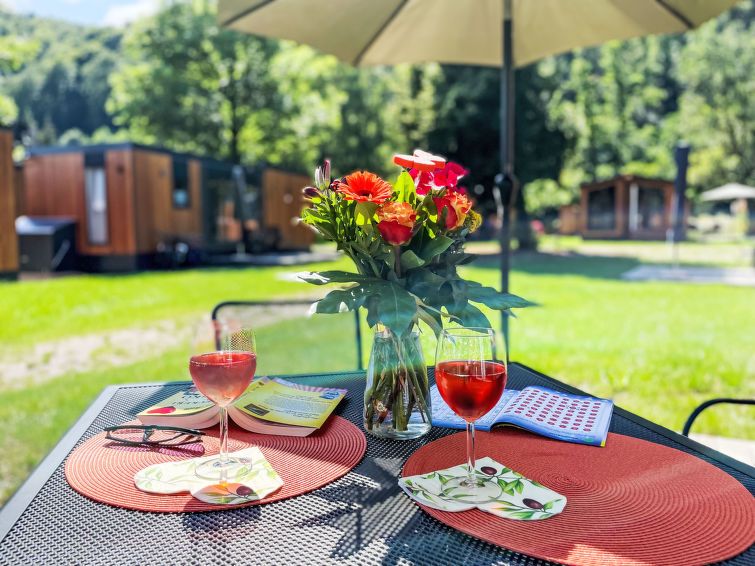 The tiny houses are really nice. Nicely furnished. You have almost everything you need. Unfortunately, there are no fly screens on the windows and doors. The house was also very hot, and you couldn't really use the terrace until the afternoon. There is no WiFi either. The area, which we thought was a campsite (it used to be), is not that nice. There are no signs. You don't recognize the reception/registration desk as such. In itself, it could be a nice place to go on holiday.