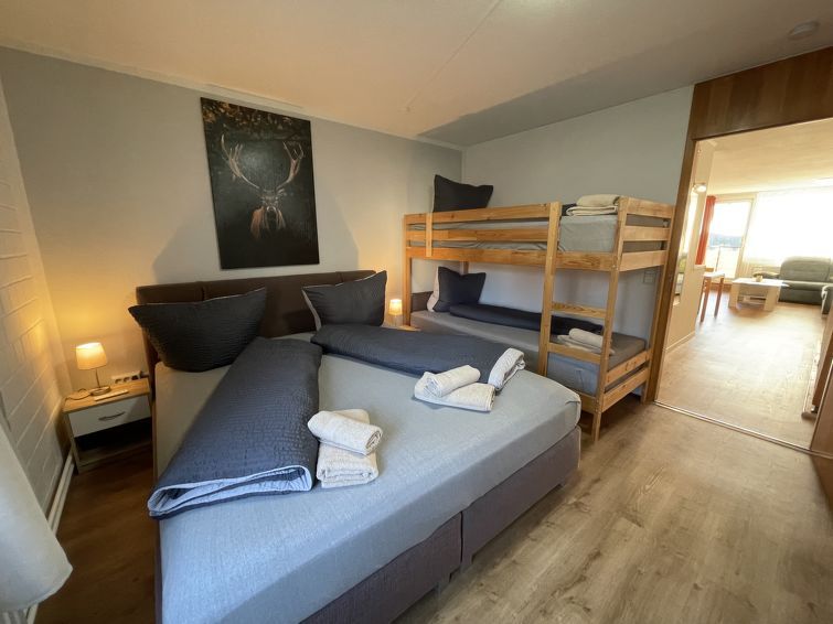 We felt right at home in the stylishly furnished accommodation. The apartment is fully furnished, the beds are first class and everything is really nice. As a family we made extensive use of the swimming pool and the outdoor pool with slide. I was also pleasantly surprised by the gym, all high-quality equipment! The area offers many options for a great family holiday. We will definitely be back in the winter. 5 stars!