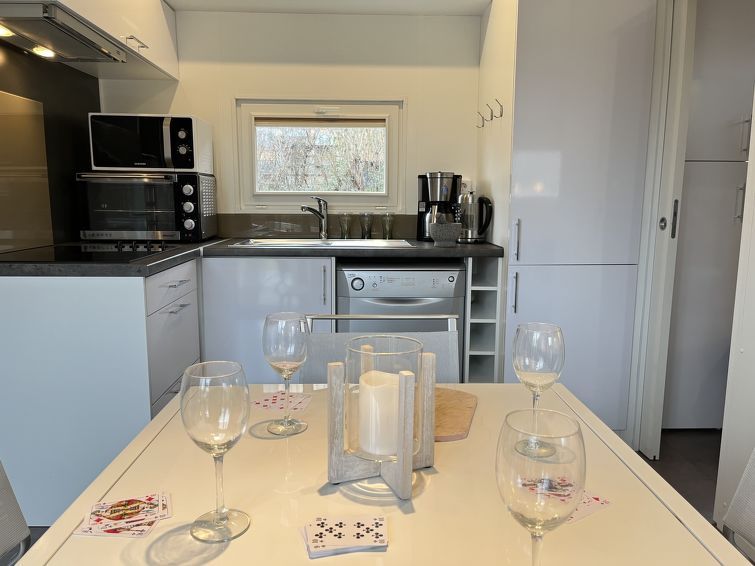 Very nice house with a great location, very close to the lake and with a large lawn directly in front of the house. Unfortunately, the oven shown in the pictures was no longer there and the restaurant at the campsite was also closed.