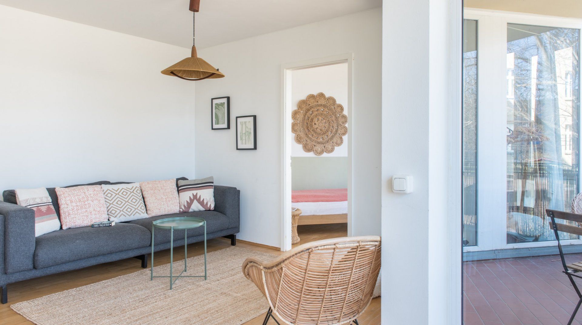 The first thing we noticed about this home is how much natural light it gets (courtesy of the huge windows, of course). Secondly, the bohemian vibe gives it a relaxed feel, with lots of space for contemplation and unwinding after a long day out. There is a balcony (which is always a plus), but if you feel like going for a walk, we can also recommend nearby Volkspark am Weinberg. Location-wise, it’s phenomenal – you’re in Mitte with easy access to Berlin’s city centre, and charming Prenzlauer Berg is also nearby if you feel like exploring a more peaceful and local part of the city.