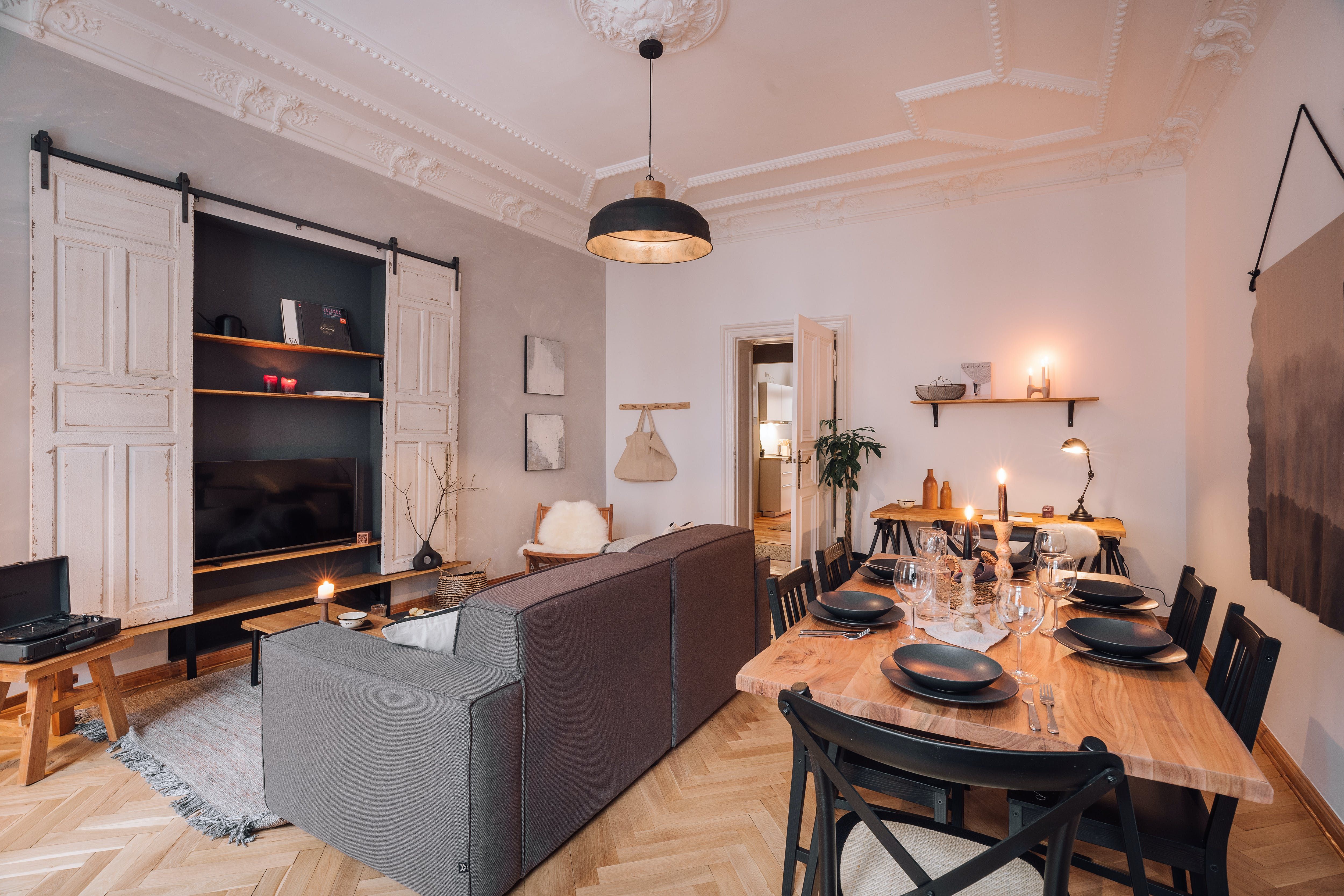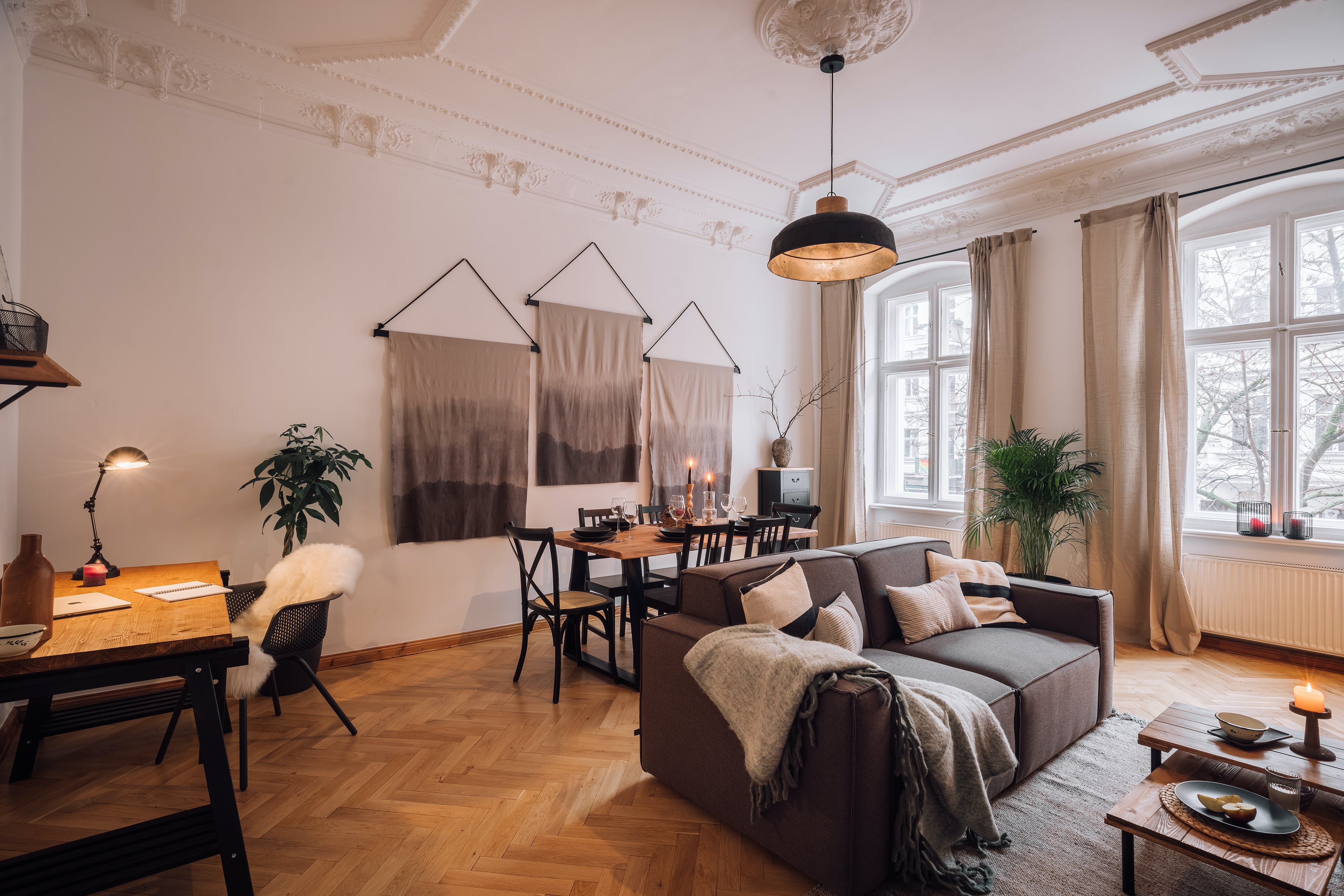 Set amid Prenzlauer Berg's hip bars and breweries, this first-floor home is worth the climb upstairs for its trendy location. Let the balcony's street view inspire boutique shopping sprees. Or how about a picnic in the park? While you'll be away from Berlin's major tourist spots, excellent transport links are just a walk from here. What's more, we love that it's a pet-friendly apartment. But there's no air conditioning for the warmer months. That said, practicality is promised for business travellers, as the cosy living room boasts a desk.