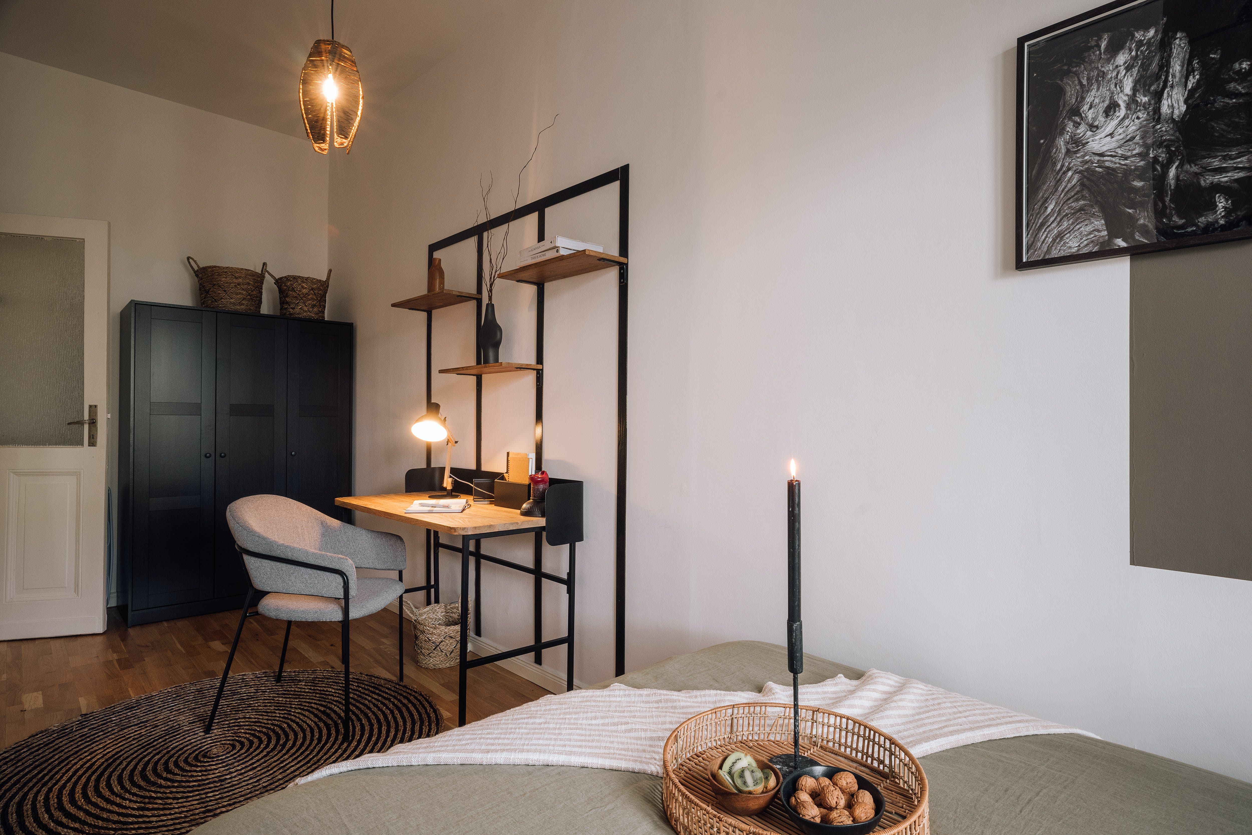 Within walking distance of Mauerpark, this apartment is perfect for work and play. Solo nomads and couples can take advantage of cafes and restaurants in their immediate surroundings, making trips to Mauerpark for concerts, flea markets or afternoon picnics. Guests visiting Berlin for business will appreciate the laptop-friendly workspace in the bedroom. Either way, you want your space to be comfortable and bright, and this home ticks both boxes. Though the kitchen is on the smaller side, it's well-equipped, and the little balcony is a nice plus for an extra bit of fresh air.