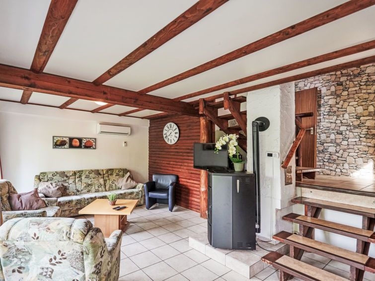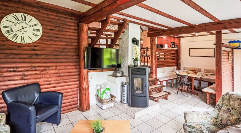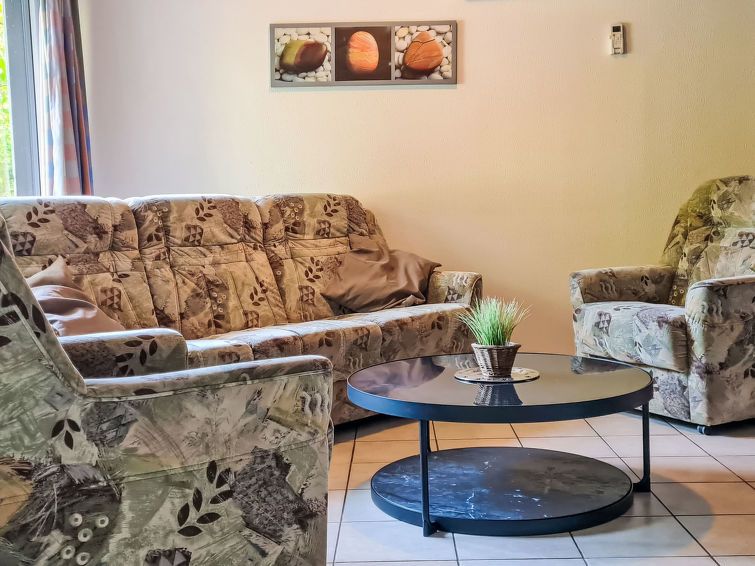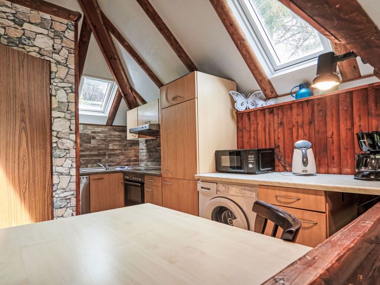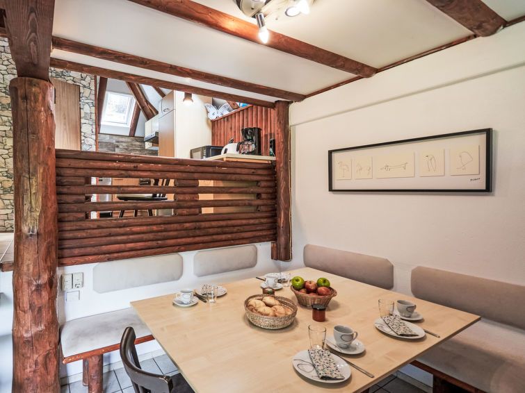 "Klein und Fein", 2-room apartment 50 m2. Rustic and wooden furniture furnishings: open living/dining room with dining nook, digital TV, radio and wood-burning stove. 1 room with rooflight with 2 beds. With sloping ceilings, open kitchen (oven, 4 ceramic glass hob hotplates, microwave, electric coffee machine) with small dining table.