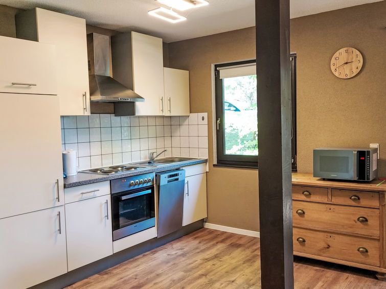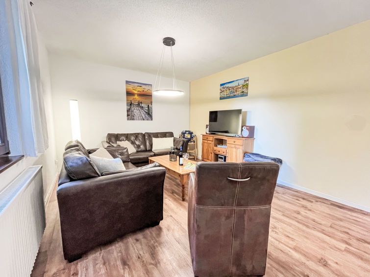 "Sternberg 227", 3-room apartment 75 m2, on the ground floor. Modern and cosy furnishings: living/dining room with Scandinavian wood stove, satellite TV and radio. Exit to the terrace. 1 room with 1 double bed. 1 room with 2 beds. Open kitchen (dishwasher, 4 ceramic glass hob hotplates, toaster, kettle, microwave, freezer).