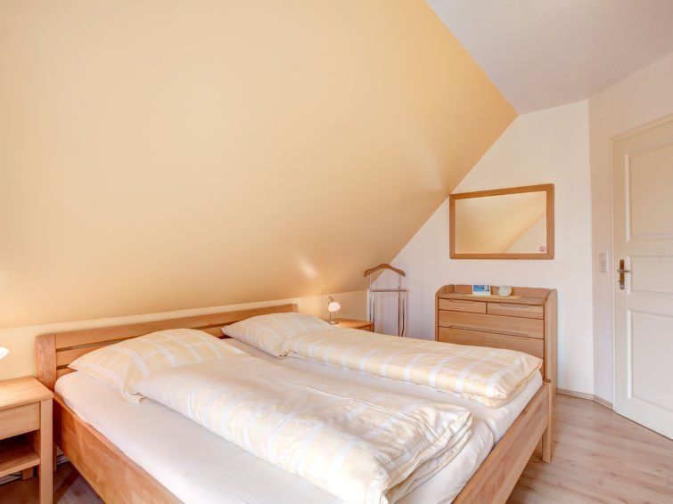 "Katamaran II", 4-room semi-detached house 90 m2 on 2 levels. Cosy furnishings: living room with cable TV and radio. Exit to the terrace. Open kitchen (oven, dishwasher, 4 ceramic glass hob hotplates, electric coffee machine) with dining table. Shower/WC, Sauna. Heating. Upper floor: with sloping ceilings, 2 rooms, each room with 1 double bed.
