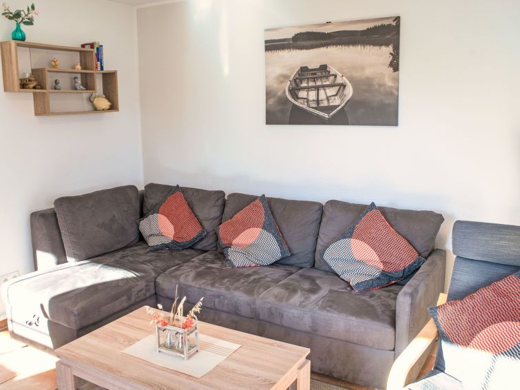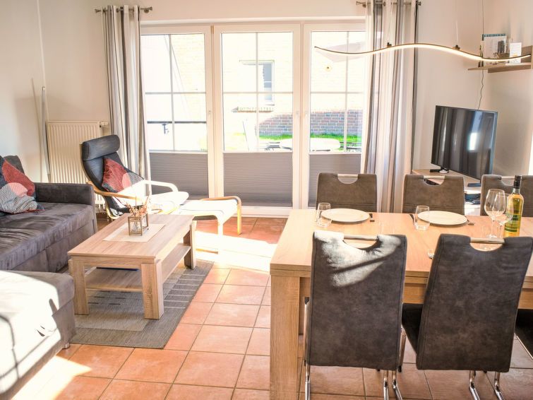 4-room terraced house 70 m2 on 2 levels. Comfortable and modern furnishings: large living/dining room with 1 double sofabed (160 cm, length 200 cm), cable TV (flat screen). Exit to the garden, to the terrace. 1 room with 1 bed (90 cm, length 200 cm). Open kitchen (oven, dishwasher, 4 ceramic glass hob hotplates, kettle, microwave, electric coffee machine) with dining table.