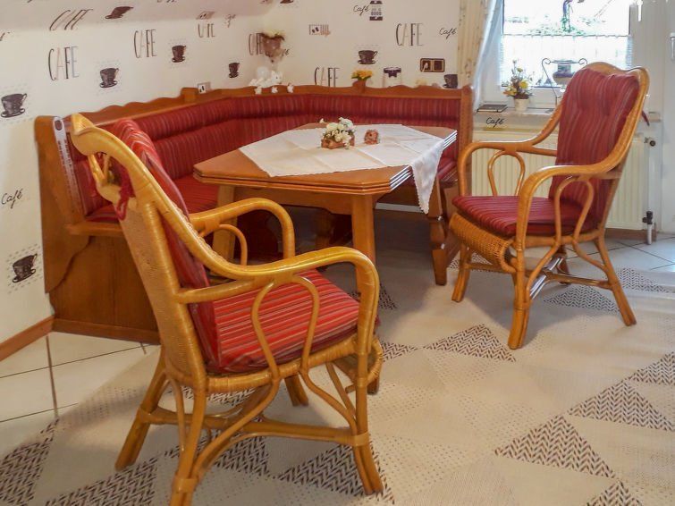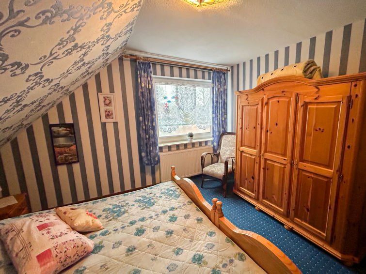 3-room apartment 80 m2, on the upper floor. Tasteful and cosy furnishings: living room 22 m2 with satellite TV (flat screen), radio and CD-player. Exit to the balcony. 1 room 16 m2 with 2 beds (100 cm, length 200 cm). 1 room 13 m2 with 2 beds (100 cm, length 200 cm). Kitchen 18 m2 (oven, dishwasher, 4 ceramic glass hob hotplates, toaster, kettle, microwave, electric coffee machine) with dining table, satellite TV (flat screen).