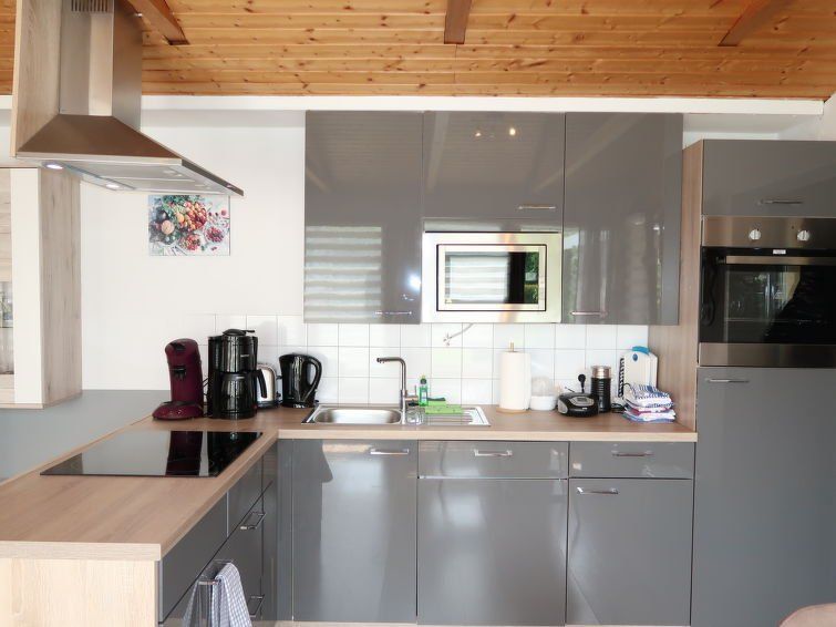 "Strandkorb", 3-room apartment 75 m2 on 2 levels. Modern and cosy furnishings: open living/dining room with satellite TV (flat screen). Exit to the terrace. Open kitchen (oven, dishwasher, 4 ceramic glass hob hotplates, toaster, kettle, microwave, electric coffee machine) with dining nook.