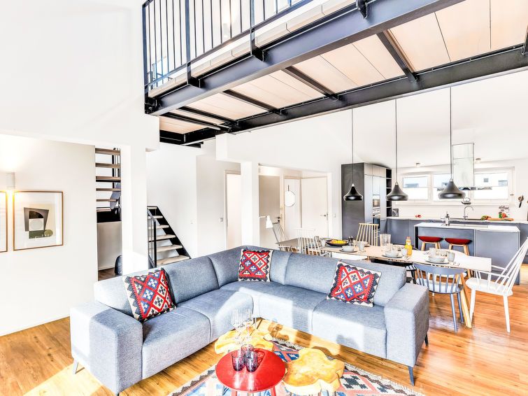 "Horizont Lodge", 6-room house 192 m2 on 2 levels. Tasteful and cosy furnishings: living/dining room with satellite TV (flat screen). Exit to the terrace. 1 room with 1 double bed (2 x 90 cm, length 200 cm). Open kitchen (oven, dishwasher, 4 ceramic glass hob hotplates, toaster, kettle, microwave, electric coffee machine).