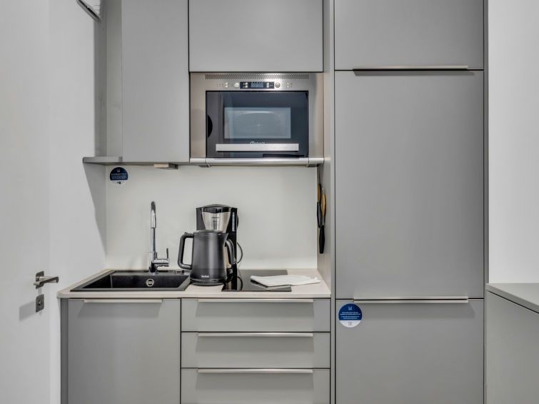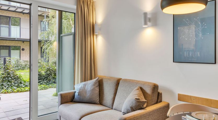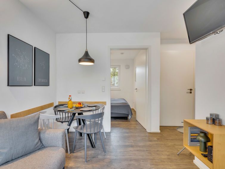 "Seeblume", 2-room apartment 39 m2, on the ground floor. Tasteful and cosy furnishings: living/dining room with 1 double sofabed and satellite TV (flat screen). Exit to the terrace. 1 room with 1 double bed (180 cm, length 200 cm). Kitchenette (dishwasher, 2 ceramic glass hob hotplates, toaster, kettle, microwave).