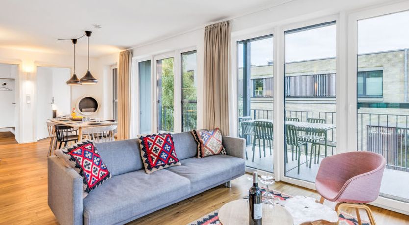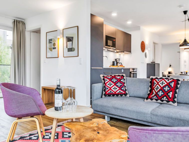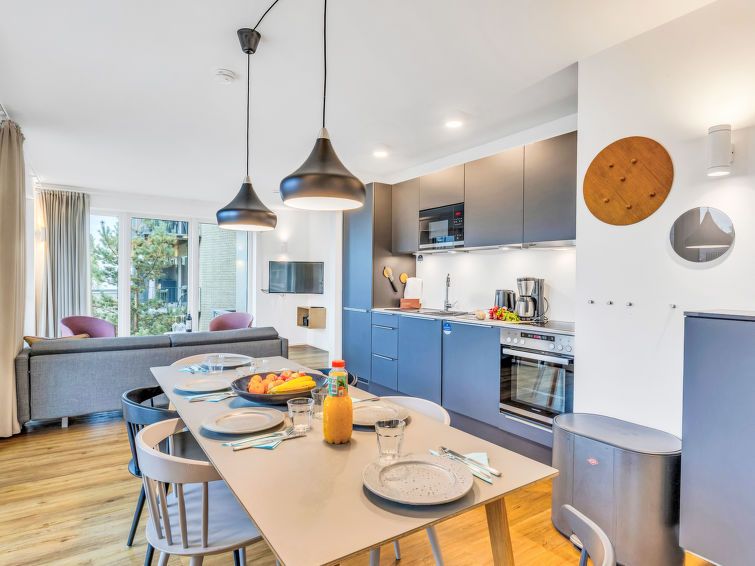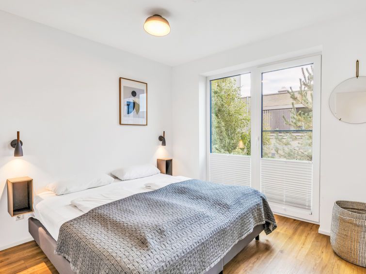 "Seeidyll", 3-room apartment 80 m2 on 1st floor. Tasteful and cosy furnishings: living/sleeping room with 1 double sofabed and satellite TV (flat screen). Exit to the balcony. 2 rooms, each room with 1 double bed (180 cm, length 200 cm). Kitchenette (oven, dishwasher, 4 ceramic glass hob hotplates, toaster, kettle, microwave, electric coffee machine).