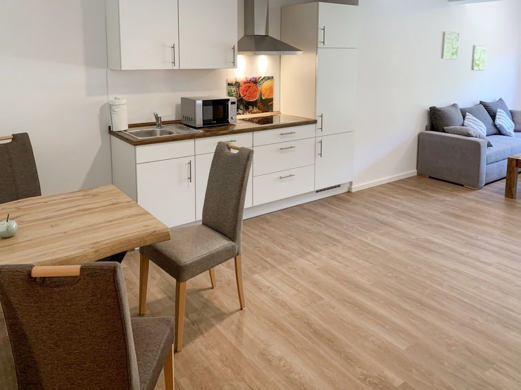 Very nice apartment. Only have one suggestion regarding the kitchen: worktop limited in space by the microwave, ie no space to prep food. Then unfortunately z. B. a salad bowl, a grater, a potato peeler, a whisk, a microwave plate cover and maybe a set of 12 cutlery would be advisable so that you don't run the dishwasher half empty. This is not intended to be a criticism, just a suggestion.