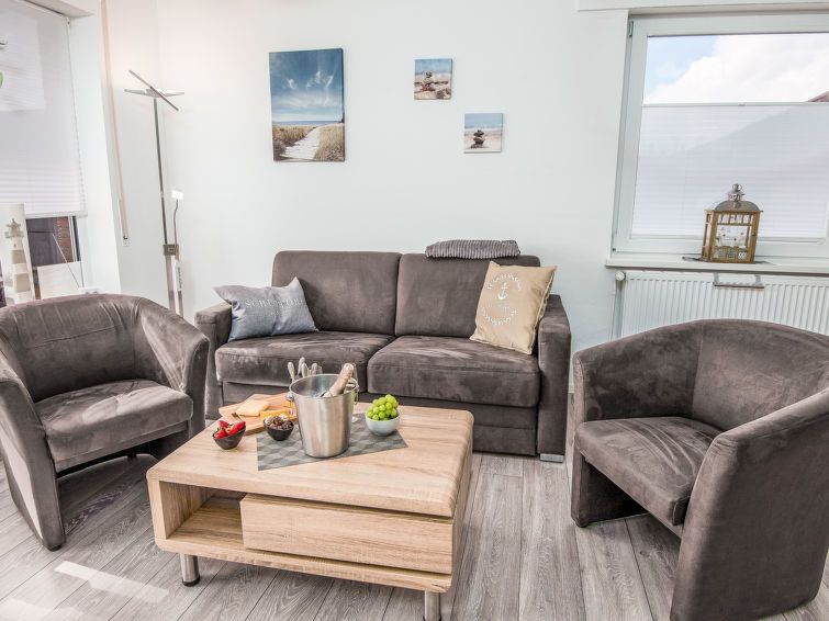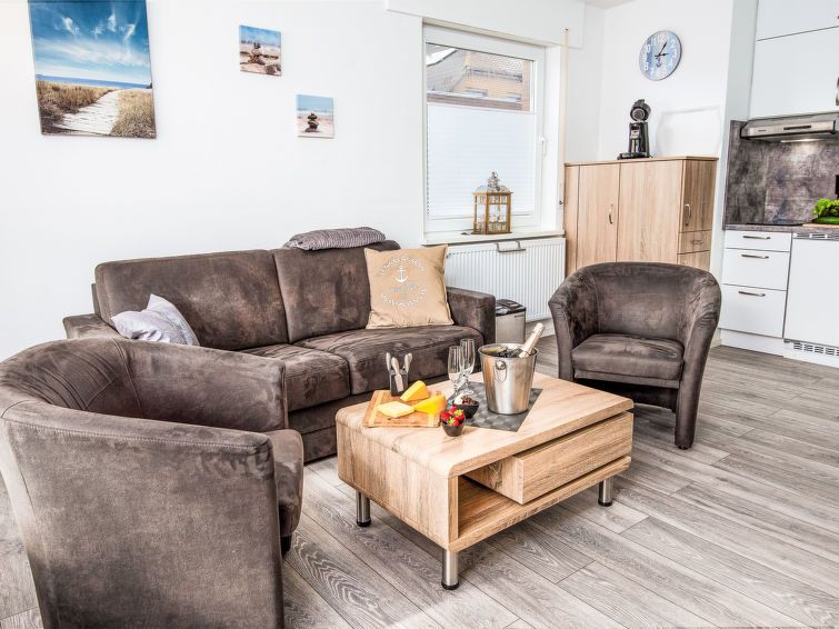 A very comfortably furnished apartment. Although it is an 8-unit house, the peace and quiet was excellent. Perfectly sufficient for 2 people. The beds are very comfortable, as is the sofa set. The terrace is equipped with everything you need. It is just under 10 minutes to the bakery. A connecting path around the corner leads directly to the Oceanwave and the dike. Everything was perfect, I would definitely come back.