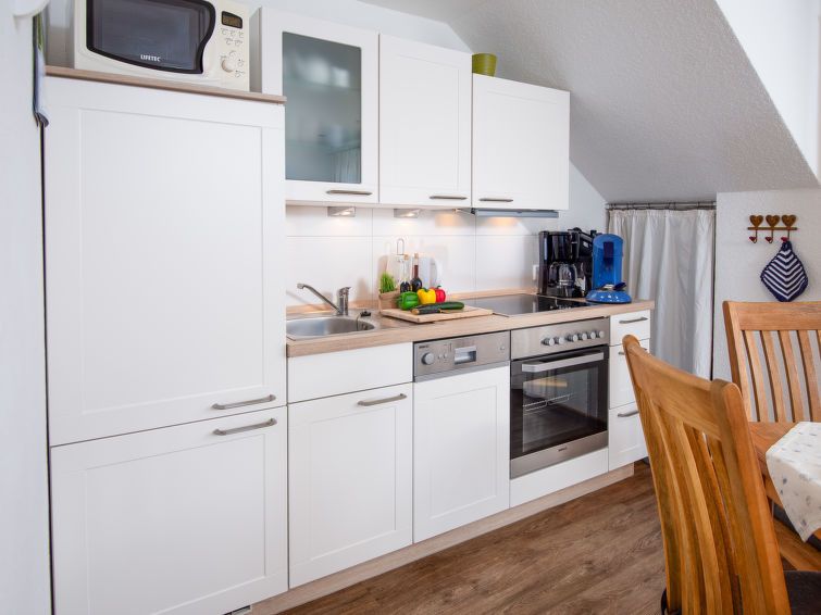 "Ballertutje", 2-room apartment 45 m2, on the upper floor. Cosy furnishings: living/dining room 29 m2 with 1 fold-away bed (90 cm, length 190 cm), satellite TV (flat screen), hi-fi system. Exit to the balcony. 1 room 11 m2 with 1 double bed (2 x 90 cm, length 200 cm). Kitchenette (4 hot plates, dishwasher, toaster, kettle, electric coffee machine).