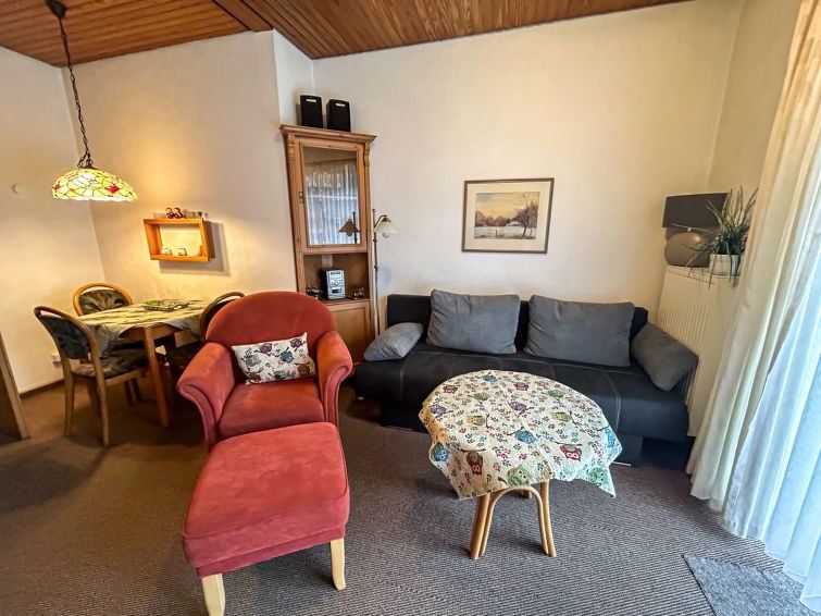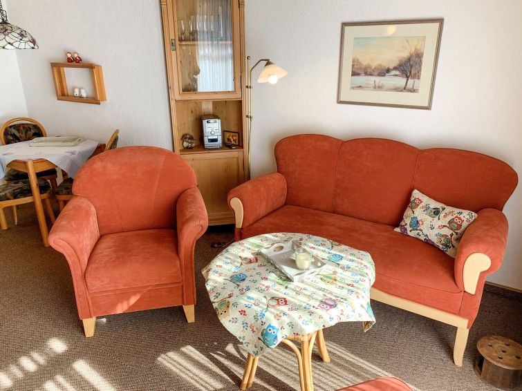 2-room apartment 35 m2, on the ground floor. Cosy furnishings: living/dining room 15 m2 with digital TV, flat screen and hi-fi system. Exit to the terrace. 1 room 8 m2 with 1 double bed (2 x 80 cm, length 200 cm). Kitchenette (2 hot plates, toaster, kettle, microwave, electric coffee machine).