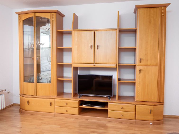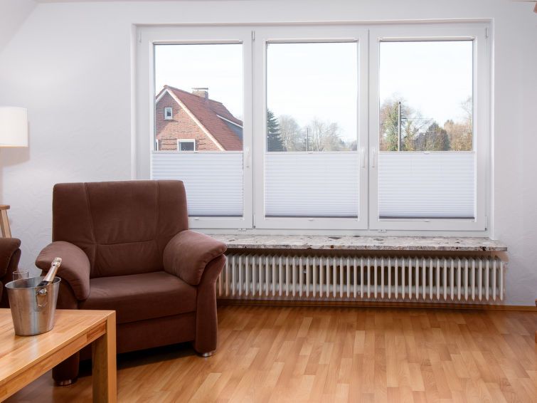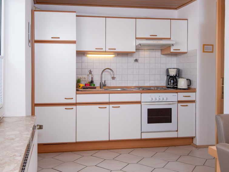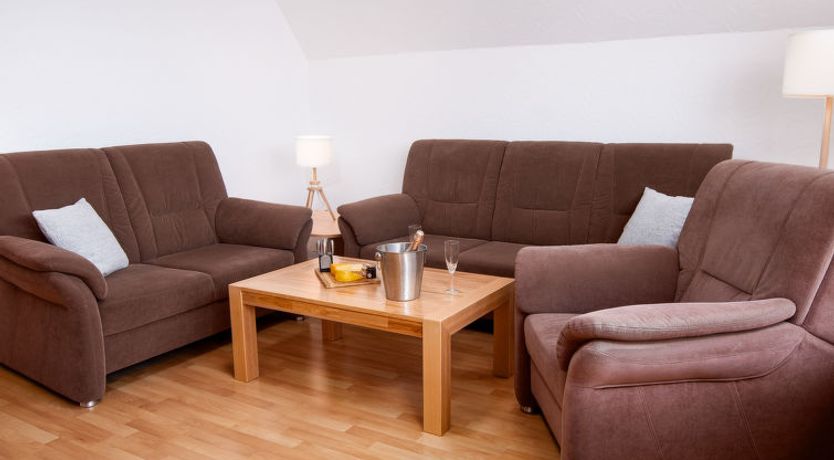 "Ferienwohnung Schäfer", 3-room apartment on 1st floor. Partly with sloping ceilings, cosy furnishings: living room with cable TV (flat screen). 1 room with 1 double bed. 1 room with 2 beds. Kitchen (4 hot plates, oven, toaster, kettle, electric coffee machine) with dining table.