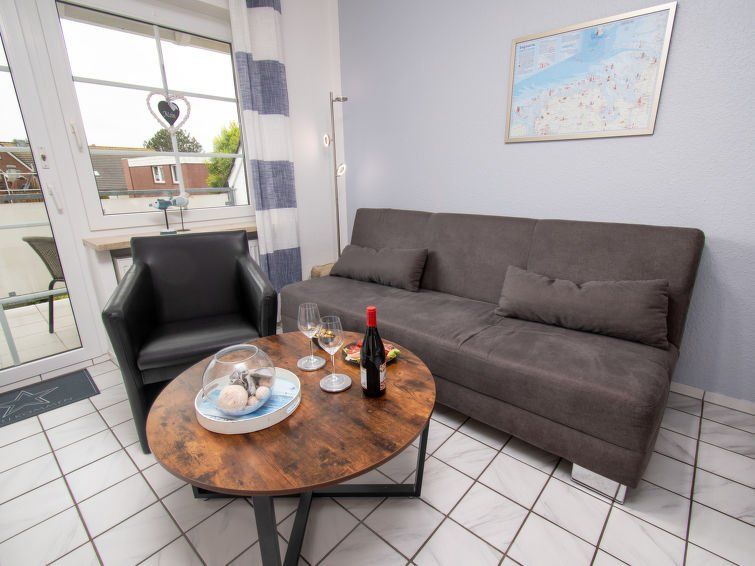- Lamps/bulbs in the bathroom and kitchen were broken upon arrival. - Kitchen very dirty, e.g., drawers full of crumbs. - Toilet brush holders almost full of liquid (?) - Shower is a disgrace, only for short people; this should definitely be mentioned in the apartment description. - Balcony dirty, small trees in the joints, leaves, etc. The balcony cladding hasn't been cleaned in a long time. In the picture shown, it's white. = there's a lot to do!!!