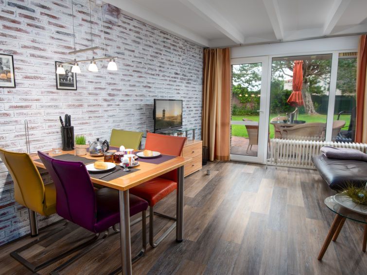 The location of the holiday home is good, as everything is within walking distance, including the beach, swimming pool, playground, and shops. Parking is available in front of the house. The terrace is beautifully landscaped. The downside is that the kitchen is very small and there is no dishwasher. The bedrooms, including the children's and master bedrooms, are very cramped. The mattresses on the beds are very worn. The living room and hallway are very well equipped. The bathroom is small but adequate; unfortunately, the shower cubicle is very worn.