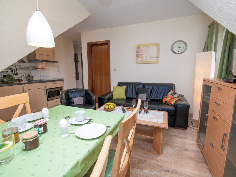 The apartment is well suited for a holiday with 2 people. For 4 it would be too small for us. Everything is functionally furnished. All appliances are in perfect condition and serve their purpose. The beds are good. The bathroom is bright and clean and has a window. WiFi worked absolutely without any problems. The location is quiet and very close to a bakery, discount store and a gas station. Restaurants are within easy walking distance.