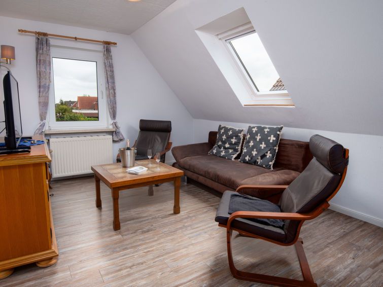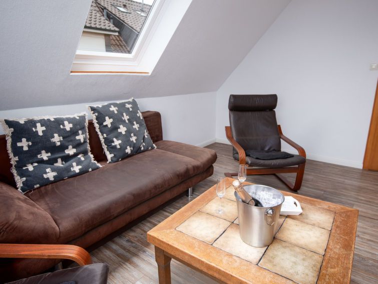 For 2 adults + 2 children okay, couch already worn out, mold on the bathroom window, TV very bad sound, kitchen, small wall door, pulls through because it is defective, nothing for 4 adults because the couch is much too small. The heating did not work, it was cold in the apartment Furnished. (No oven, wooden spoons, etc. would have to get new ones) Several times a day there was always a humming sound as if someone were drilling holes in a wall, even at night. We were out a lot, so only there to sleep. We would rather spend a little more. Otherwise okay. Great location