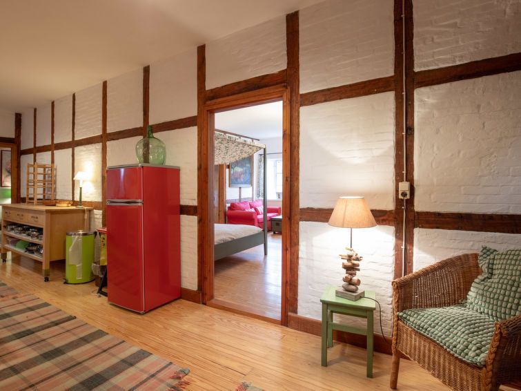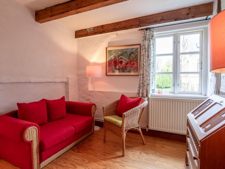 3-room apartment 120 m2, on the upper floor. Spacious, renovated, stylish and cosy furnishings: upper floor: living/sleeping room with 1 double bed, dining table, satellite TV and hi-fi system. 1 room with 1 double bed and shower/WC. 1 room with 1 bed and 1 double bed. Kitchen (oven, dishwasher, 4 ceramic glass hob hotplates, toaster, kettle, electric coffee machine).