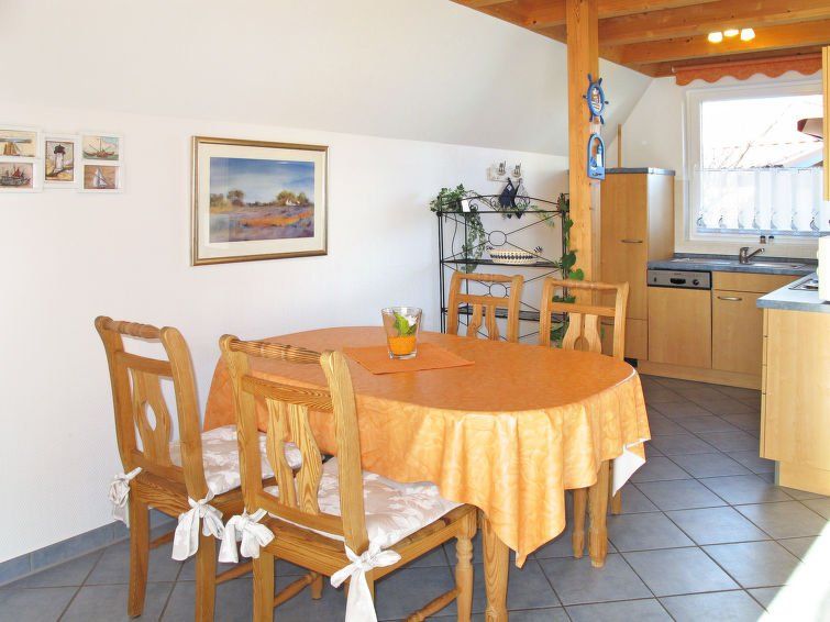 "Strandpirat", 3-room house 62 m2 on 2 levels. Cosy furnishings: living/dining room with dining table and satellite TV. Exit to the terrace. Open kitchen (4 hot plates, oven, toaster, kettle, electric coffee machine). Shower/WC. Upper floor: 1 room with 1 double bed. 1 room with 2 beds.