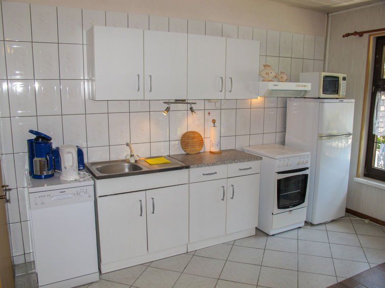The holiday home, more of a bungalow, is perfectly fine in terms of furnishings, although it is a bit outdated in places. For example, the mirror cabinet in the bathroom and the shower shelf could definitely be replaced. It should be noted that the holiday home is suitable for dogs, but there is no garden gate. This is more than inconvenient, as the dog has access to the adjacent restaurant at all times...