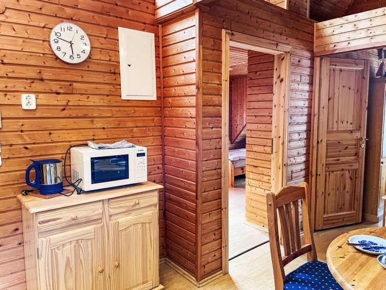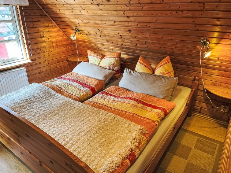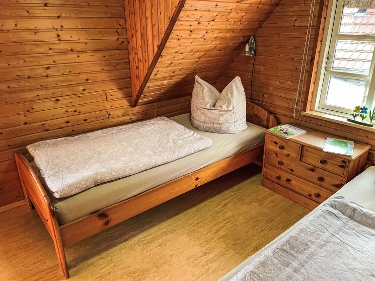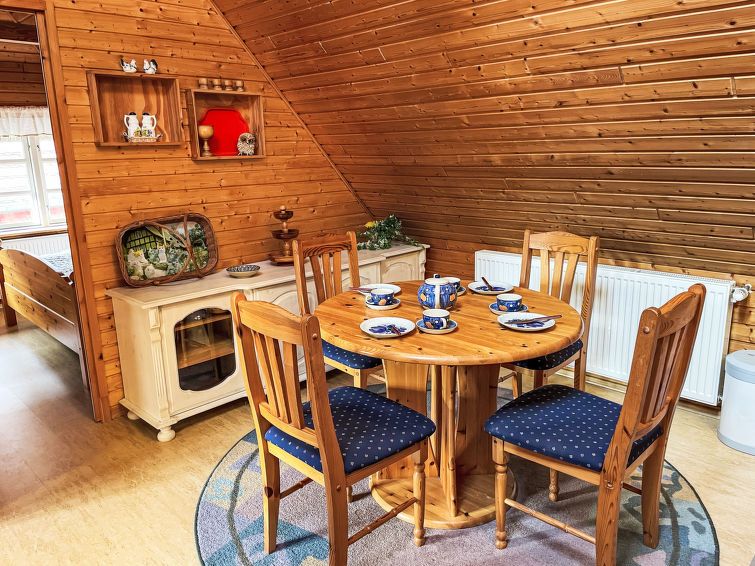 "Brigitte", 3-room apartment 65 m2, on the upper floor. Practical and wooden furniture furnishings: upper floor: living room with sloping ceilings with satellite TV (flat screen), radio. 1 double bedroom with sloping ceilings. 1 room with sloping ceilings with 2 beds. With sloping ceilings kitchen (2 hot plates, mini-oven, toaster, kettle, microwave) with dining table.