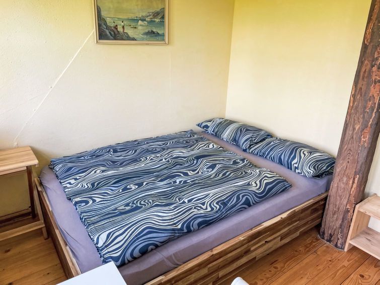 9-room cottage 120 m2 on 3 levels. Spacious, partly with sloping ceilings, rustic and wooden furniture furnishings: large living/dining room with open-hearth fireplace (only for decoration). Exit to the garden, to the terrace. 1 room with 1 sofabed (120 cm, length 190 cm). Playroom.