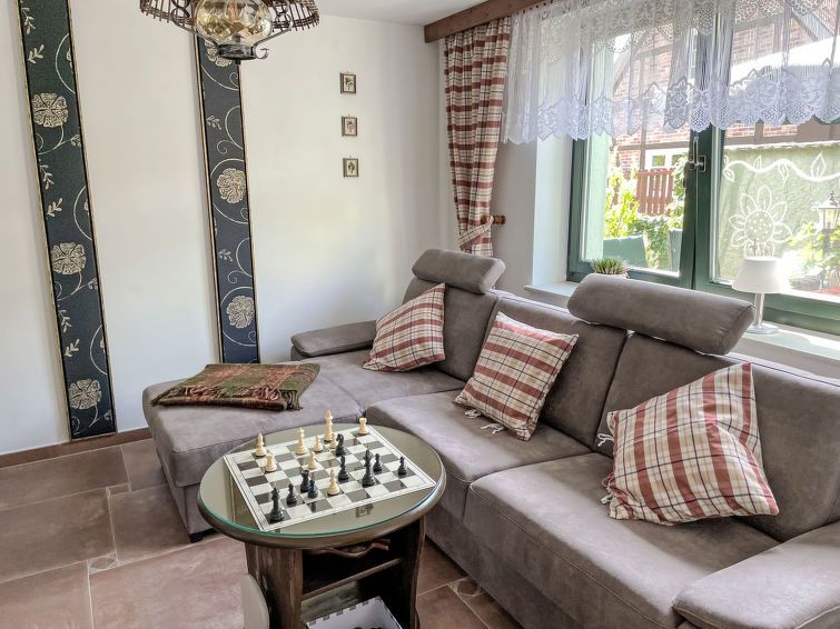 "Backstube", 3-room apartment 62 m2, on the ground floor. Comfortable and stylish furnishings: living room with 1 double sofabed (150 cm, length 200 cm), Scandinavian wood stove and satellite TV (flat screen), radio. 1 room with 1 double bed. Dining room with dining table. Open kitchen (dishwasher, 4 ceramic glass hob hotplates, toaster, kettle, microwave, electric coffee machine).