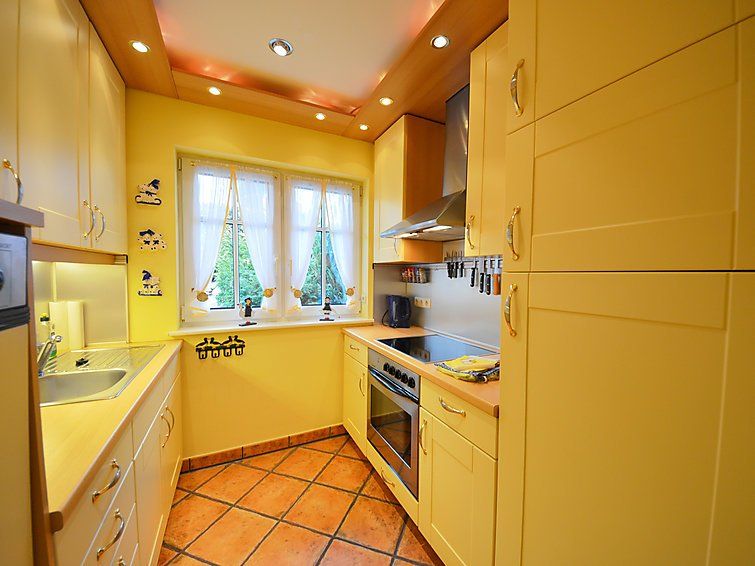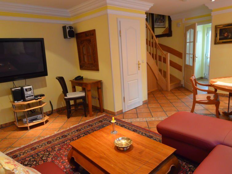 "Lotsenhaus", 3-room terraced house 67 m2 on 2 levels, on the ground floor. Living/dining room with satellite TV, video, CD-player and hi-fi system. Open kitchen (oven, dishwasher, microwave, electric coffee machine). Sep. WC. Upper floor: 2 double bedrooms with sloping ceilings. Bath/shower/WC.