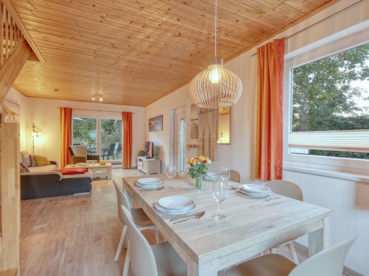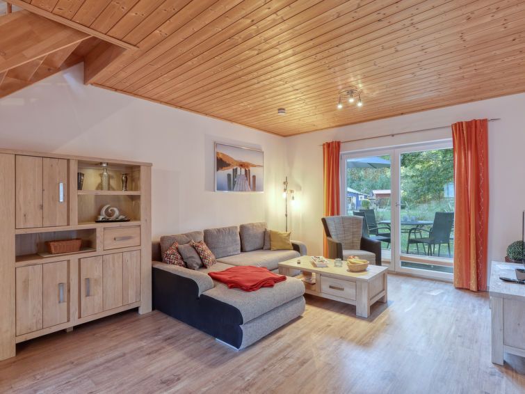 "Möwennest", 3-room semi-detached house 68 m2 on 2 levels. Spacious and bright, tasteful and cosy furnishings: living/dining room with satellite TV (flat screen). Exit to the terrace. Kitchenette (oven, dishwasher, 4 ceramic glass hob hotplates, toaster, freezer, electric coffee machine).