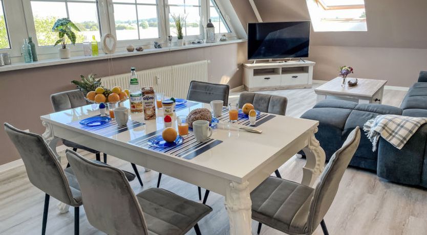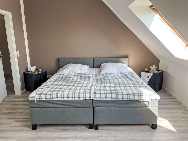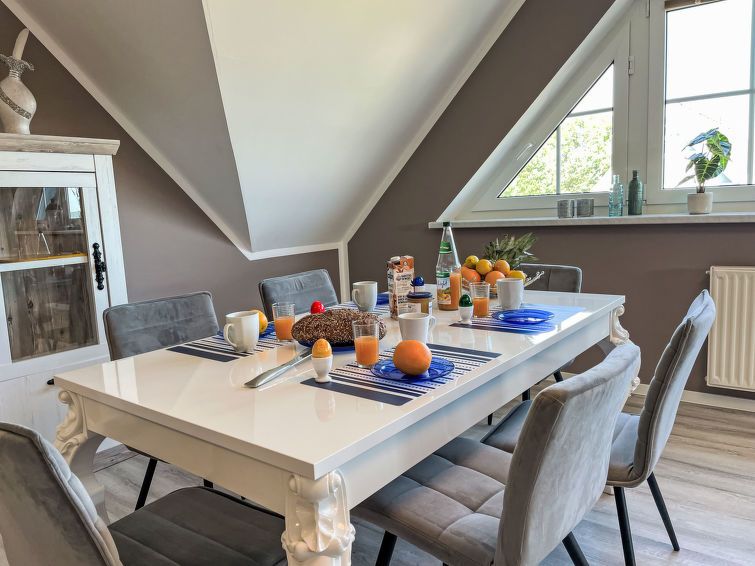 "Ostseeblick", 3-room apartment 75 m2, on the top floor. Bright, with sloping ceilings, renovated in 2020, beautiful and cosy furnishings: living/dining room with sloping ceilings with dining table and cable TV (flat screen). 2 rooms with sloping ceilings with rooflight, each room with 1 double bed (200 cm, length 200 cm).
