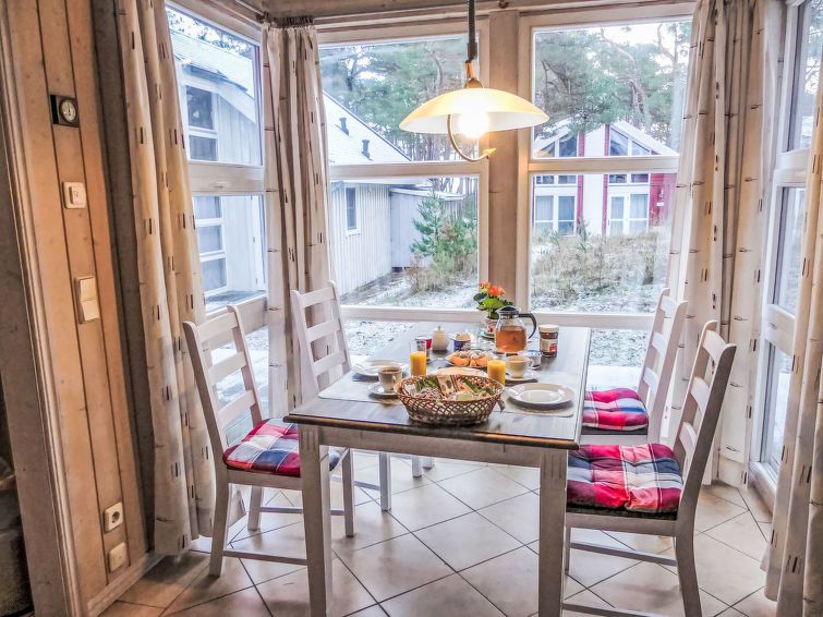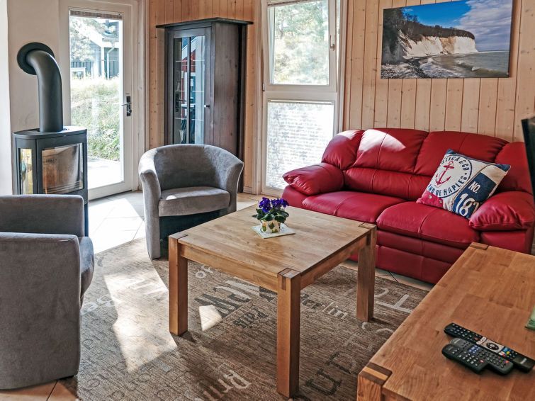 3-room house 75 m2 on 2 levels. Cosy furnishings: living/dining room with Scandinavian wood stove and satellite TV (flat screen), CD-player and hi-fi system. Exit to the terrace. 1 room with 1 double bed. Open kitchen (dishwasher, 4 ceramic glass hob hotplates, microwave, freezer, electric coffee machine).