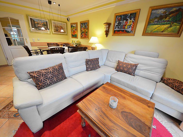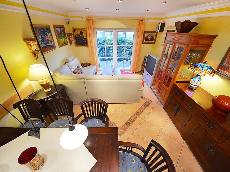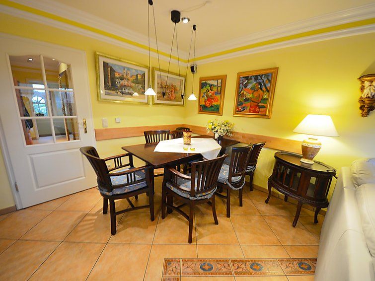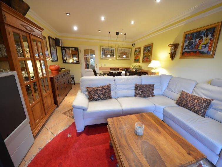 "Strandflieder", 5-room terraced house 95 m2 on 3 levels, on the ground floor. Living/dining room with satellite TV, video, CD-player and hi-fi system. Open kitchen (oven, dishwasher, microwave, electric coffee machine). Shower/WC. Upper floor: 2 double bedrooms. Bath/shower/WC. Top floor: 2 double bedrooms with sloping ceilings.