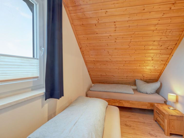 "Strandläufer", 3-room semi-detached house 68 m2 on 2 levels. Bright, tasteful and cosy furnishings: living/dining room with satellite TV (flat screen). Exit to the terrace. Kitchenette (oven, dishwasher, 4 ceramic glass hob hotplates, toaster, freezer, electric coffee machine). Upper floor: 1 room with sloping ceilings with 1 double bed.