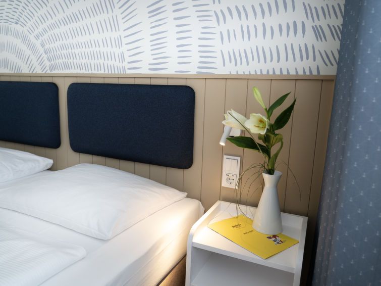 "App. Typ 1", 2-room apartment 43 m2. Modern and cosy furnishings: living room with dining table and satellite TV (flat screen). Exit to the balcony, to the terrace. 1 room with 1 double bed (180 cm, length 200 cm). Kitchenette (oven, dishwasher, toaster, kettle, microwave, freezer, electric coffee machine).