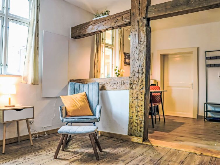 "Georg", 2-room apartment 50 m2, on the ground floor. Rustic and cosy furnishings: living/dining room with dining table and satellite TV (flat screen). 1 room with 1 double bed (180 cm, length 200 cm). Kitchenette (2 hot plates, electric coffee machine). Shower/WC. Heating. Wooden floors.