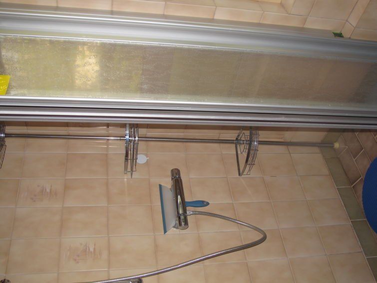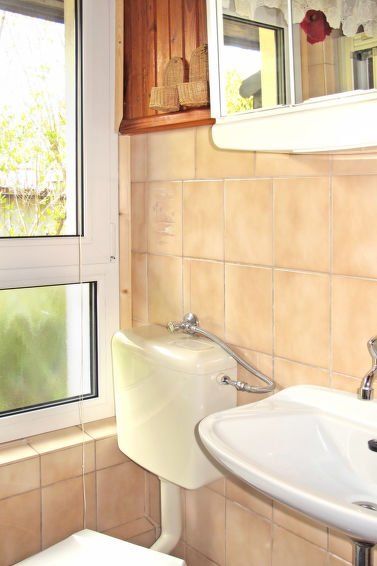 Stairs up are far too steep, folding door to shower/toilet doesn't close, toilet seat wobbly, very basic but OK. On closer inspection, dusty corners and places. Otherwise, owner very friendly. Dogs are welcome.