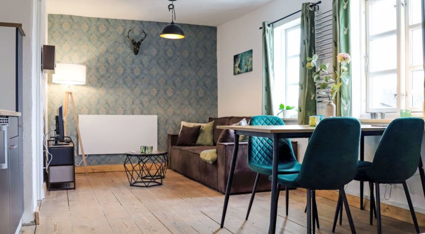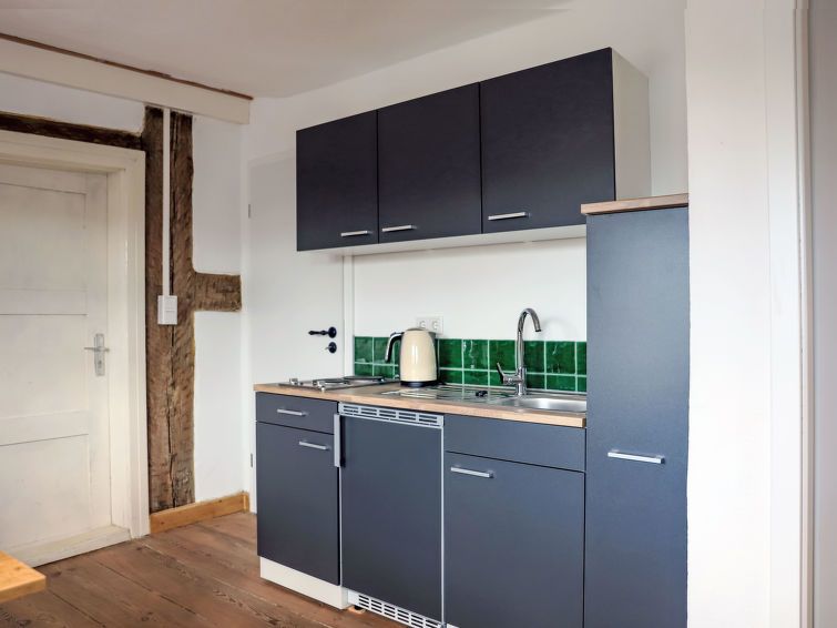 "Luise", 2-room apartment 40 m2 on 1st floor. Rustic and cosy furnishings: living/dining room with dining table and satellite TV (flat screen). 1 room with 1 double bed (180 cm, length 200 cm). Kitchenette (2 hot plates, electric coffee machine). Shower/WC. Heating. Wooden floors.
